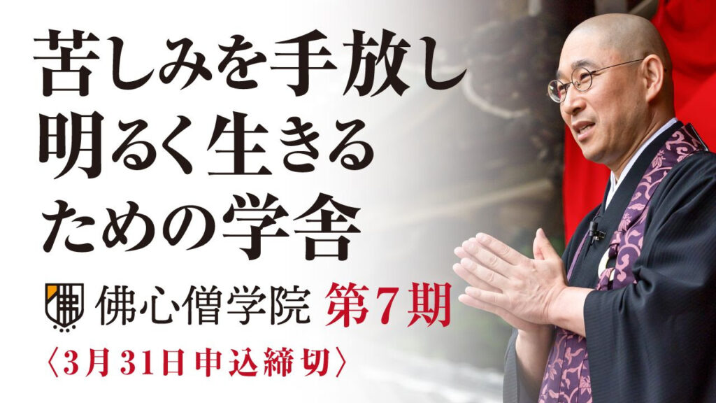 「苦しみを手放し、明るく生きる教え」である仏教。その仏教を理論と実践に分けて、体系的に学ぶのが佛心僧学院です。